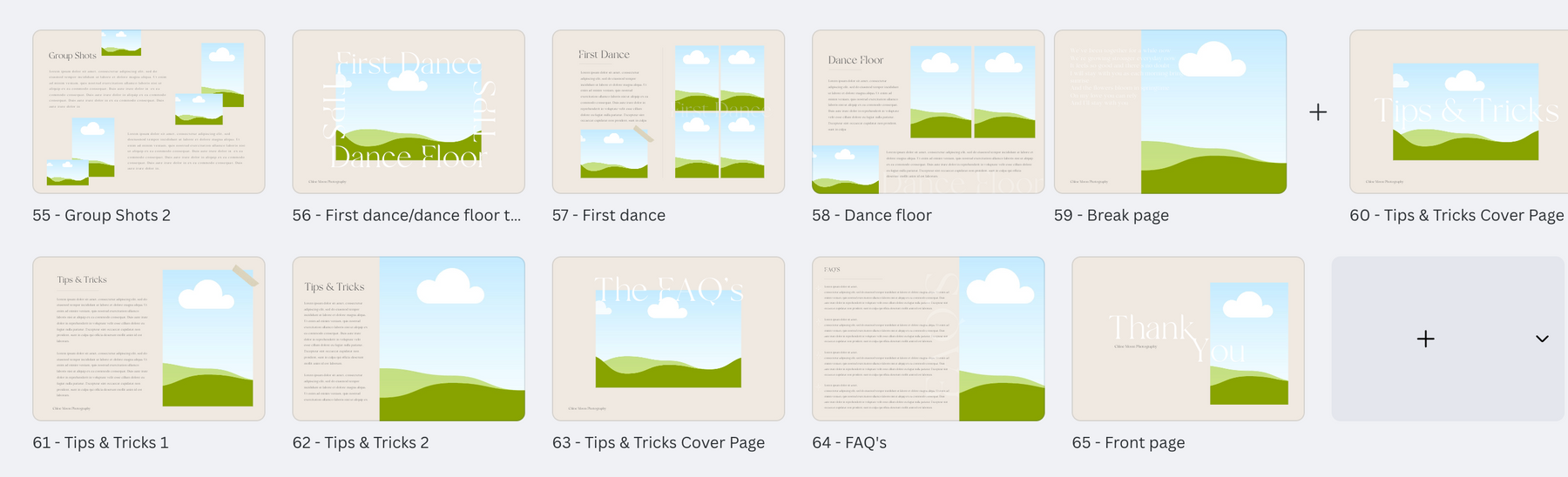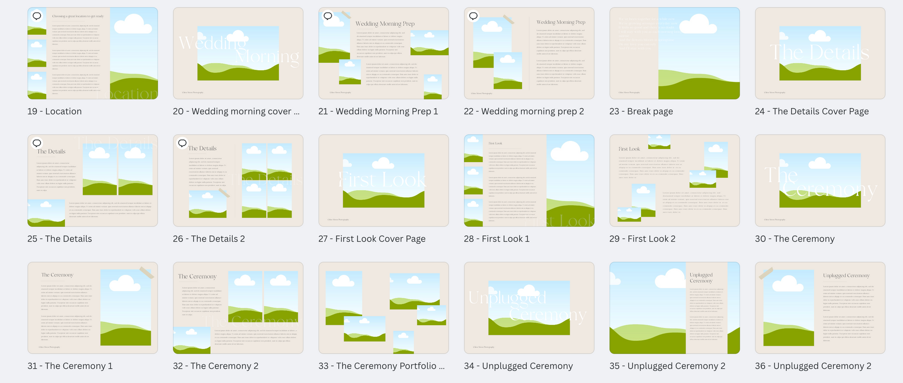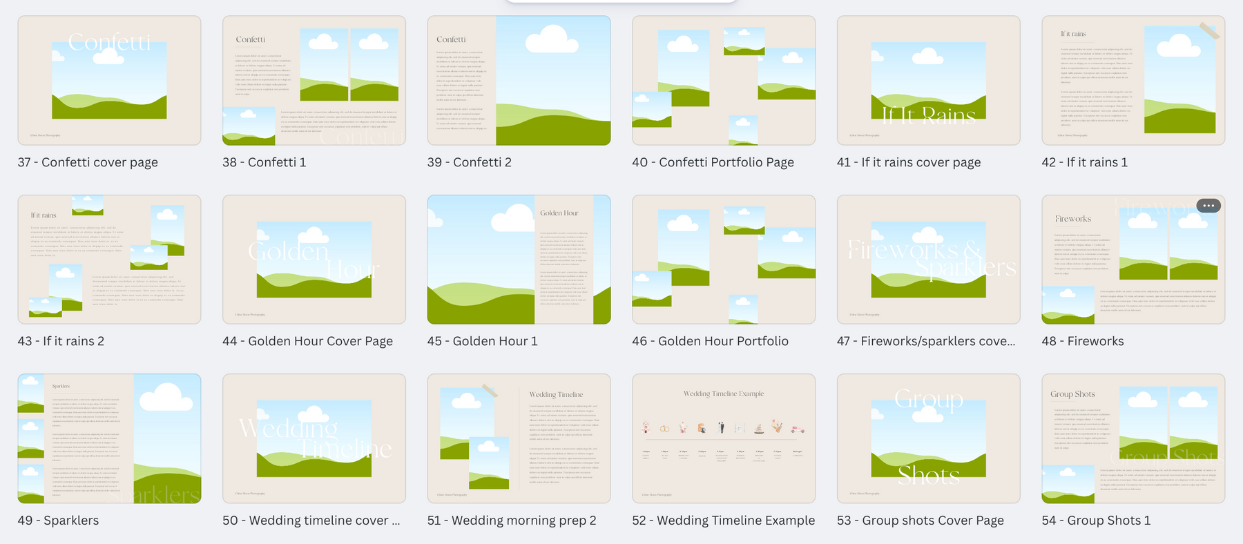 Cover Page ✨Welcome Intro page ✨What to Expect ✨ Engagement Section including Why Have an Engagement Shoot, Examples, Engagement Shoot Quick Tips and What to Wear pages ✨Second Shooter Section including Why Have a Second Photographer and examples ✨ Wedding Albums ✨ Timeline Planning Advice ✨Timeline Example Template ✨Getting Read location tips ✨Guide to Morning Prep ✨ First Look ✨How to get the best Ceremony Photos ✨Advice for Outdoor Ceremonies ✨Unplugged Ceremonies ✨Planning the Perfect Confetti Shot ✨What Happens If It Rains? ✨ Couple Portraits ✨Golden Hour ✨Sparkler Shots ✨Group Photos ✨First Dance and Dance floor Tips ✨I’ve Got My Wedding Gallery - Now What?