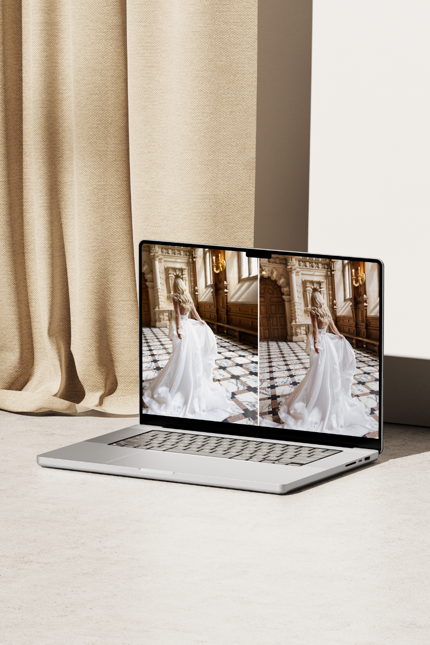 The Modern Minimals Pack includes 11 presets that I use in my daily editing workflow. These presets feature my revamped classic Black and White, an indoor direct flash preset, and several others tailored for various lighting scenarios—bridal prep, details, flatlays, indoor portraits, outdoor portraits—all built on the same base for a consistent, cohesive look.
